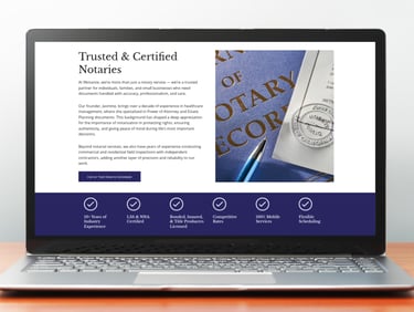 It includes dedicated sections for their full service list, an area‐map for coverage across Indianapolis suburbs, plus client reviews for social proof. Every design element was chosen to convey reliability, convenience and professionalism — key traits for a mobile notary business where trust and flexibility matter most.