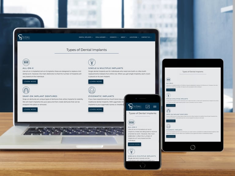 While working for a Dental Marketing agency, I designed this website for one of their clients. While doing the design, a challenge was ensuring that all elements were responsive across all devices, including tablets, as the practice was going to be using tablets at their front desk. The full width nature of the images/content layout made this difficult due to the constraints of the development platform that we were using, Thrive Architect. Through much testing, I was able to find a solution that worked with the development platform.